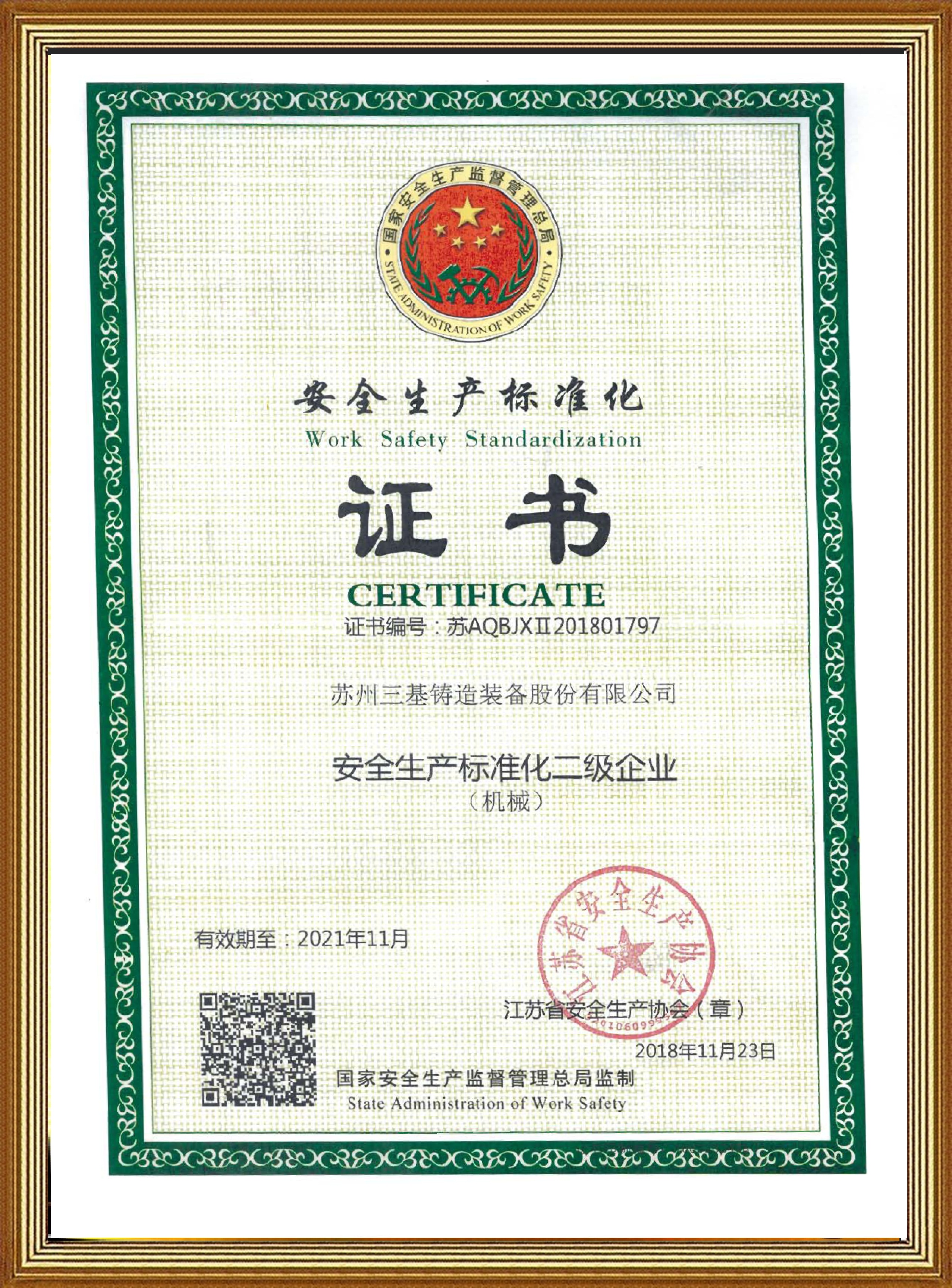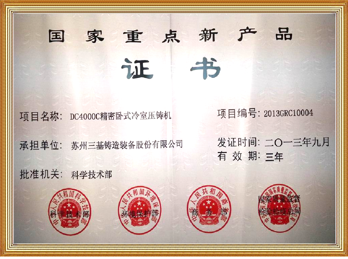歷程23年,三基鑄造先后獲得了“江蘇省科技進(jìn)步獎(jiǎng)”、“江蘇省機(jī)械行業(yè)科技進(jìn)步”、“蘇州市科技進(jìn)步獎(jiǎng)”、“蘇州市雙杯獎(jiǎng)”、“國(guó)家重點(diǎn)新產(chǎn)品”、“江蘇省優(yōu)秀新產(chǎn)品”、"江蘇省優(yōu)秀新產(chǎn)品金獎(jiǎng)"等榮譽(yù)