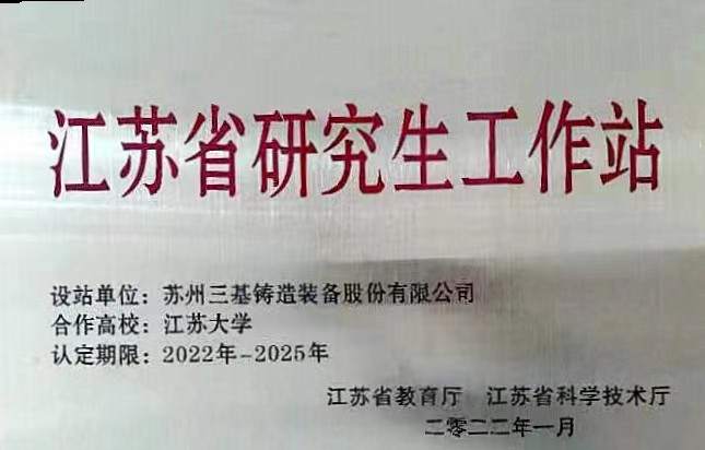蘇州三基鑄造裝備股份有限公司與江蘇大學(xué)合作共同申請建設(shè)的江蘇省研究生工作站獲得了江蘇省教育廳、江蘇省科技廳等政府部門的批準。此次的校企合作創(chuàng)建研究生工作站,既是探索應(yīng)用型人才培養(yǎng)模式的一次嘗試,又是為擠壓鑄造行業(yè)高質(zhì)量發(fā)展提供有力人才支撐和技術(shù)支撐的生動實踐。